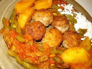 затем добавить фасоль.тушить 10 минут.ввести 1/2 стакана воды.картофель.петрушку и базилик и готовить на медленном огне накрыв крышкой ещё минут 15-20/до готовности картофеля/.снять крышку и дать выкипеть жидкости.соус должен быть густым.