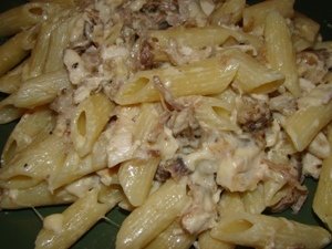 мясо порезали, положили на сковороду с разогретым оливковым маслом, немного прожарили наше ассорти, добавляем натертый пармезан, сливки, специи (по вкусу), смесь немного проварить до загустения, макароны слить, добавить в мясное ассорти, перемешать, посыпать натертым любым сыром и блюдо готово.
