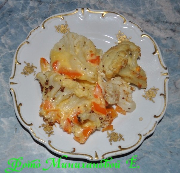 Форму смазать маслом, выложить капусту, перемешать с горчицей, посыпать солью, перцем. Мелко нарезать перец, положить сверху. Взбить яйца, залить капусту. Сыр натереть на мелкой тёрке посыпать сверху. Поставить в духовку 220 градусов,30 мин.