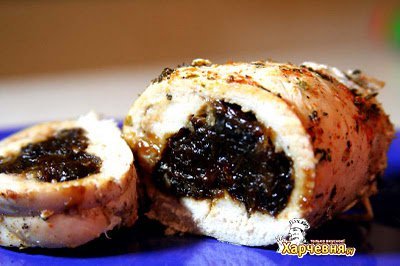 Филе моем и просушиваем, затем нарезаем широкими тонкими пластинками, как на отбивные. Отбиваем филе с двух сторон, а чтобы мясо не порвалось для этого нужно накрывать его пленкой или целлофановым пакетиком, и только потом отбивать. Затем на пленку выложить филе так, чтобы пленка была полностью закрыта мясом, получится прямоугольник где-то 30 на 40 сантиметров. Посыпать сверху солью, специями и желатином. Чернослив промыть и порезать не сильно мелко, сложить на курицу, свернуть рулет и перевязать его нитками или бечевкой. Опустить в кипящую воду, варить где-то 35-40 минут после того, как закипит вода. После того, как мы достали рулет, его нужно положить под гнет и охладить. Приятного аппетита.