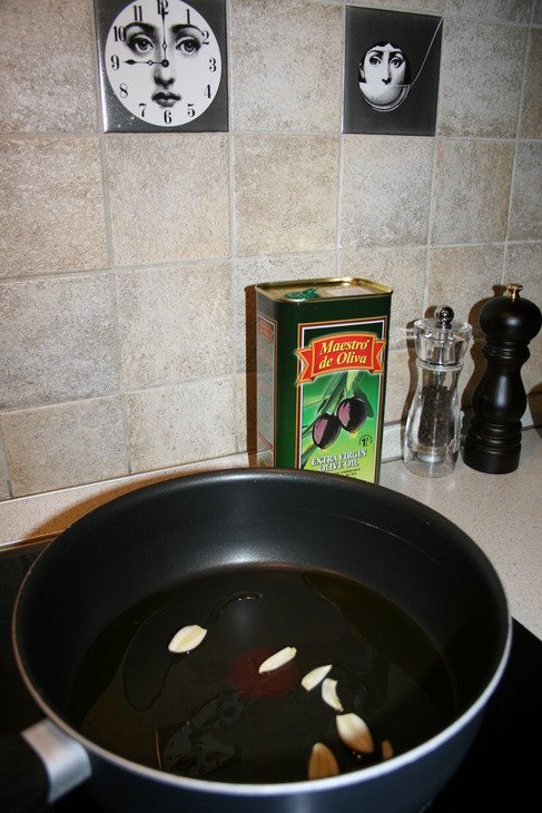 В оливк. масле обжарить чеснок в течении 5 мин. Вынуть чеснок.