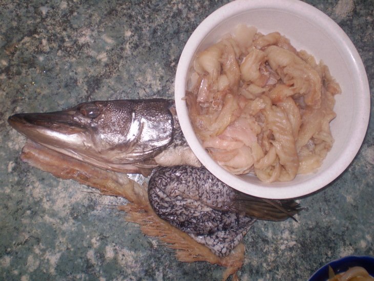 2.подрезала на животе кожу от мякоти и понемногу снимать, ножницами подрезать где плавники. Возле хвоста кость обрезать.