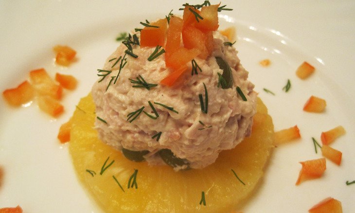 Салат из нежной курицы с виноградом и ананасом