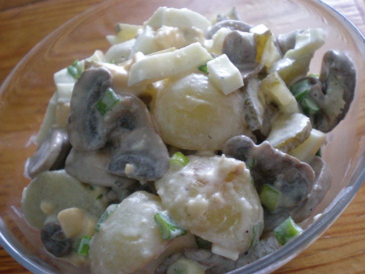 Грибы нарезать ломтиками, обжарить ок 5 минут, посолить, переложить к картофелю.