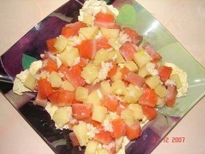 Картофель отварить, почистить, порезать кубиками