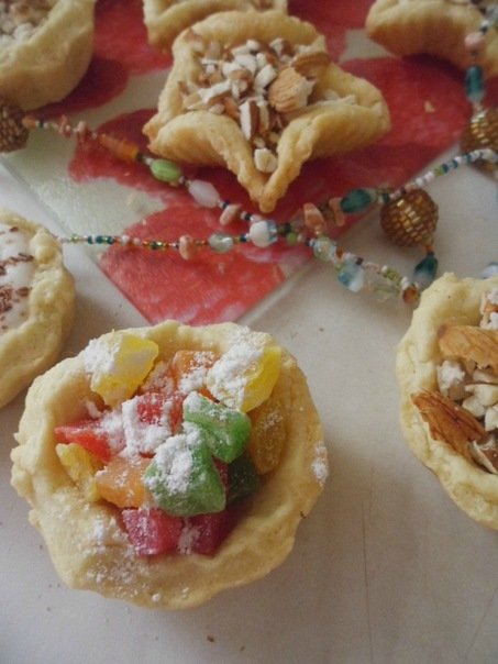 Всем Добрый Вечер,сегодня после похода в парикмахерскую,где мне ну слишком сильно обстригли волосы(15-20 см) я решила успокоится и приготовить корзиночки.Если честно я боялась что не получится,но получилось)и даже очень вкусно)Корзиночки песочные а во рту таят.У меня случились сложности с кремом,поэтому я от него отказалась и сделала разные начинки.Несколько с миндалем,цукатами и сметанным кремом.Итак перейдем непосредственно к рецепту: