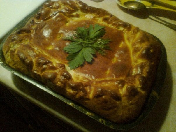 Пирог с курицей производное от "Курника"отварить картофель до полуготовности-5-6 среднихкурица-2 окорочка варёных