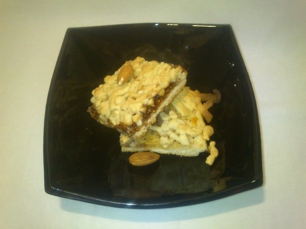 тесто: Маргарин 250гр яйца 2шт, 1 ч л. разрыхлителя, 1 ст сахара( на мой взгляд очень сладко получается я брала 2\3 стакана) мука, миндаль 100гр