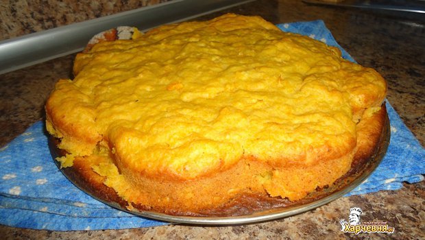 Перед тем, как выпекать наш пирог, смажьте форму для выпечки растительным маслом. Влейте в нее тесто, и ложкой разровняйте ее по всему объему формы. Выпекать тыквенный пирог нужно в разогретой до двухсот градусов духовке, на протяжении 35 минут. После этого, огонь в духовке нужно погасить, и оставить пирог «дозревать» еще на двадцать минут.