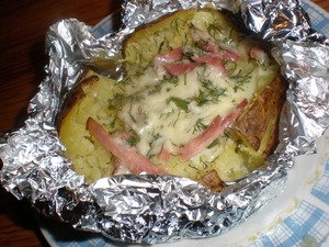 Разминаем мякоть вилкой, не до самой кожуры, оставляем пару мм.