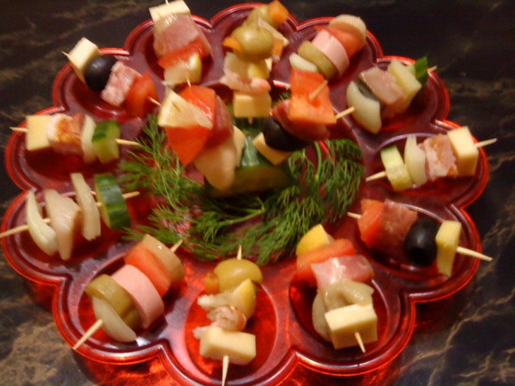 1)кубик сыра,маслина,кубик копчёной колбасы,