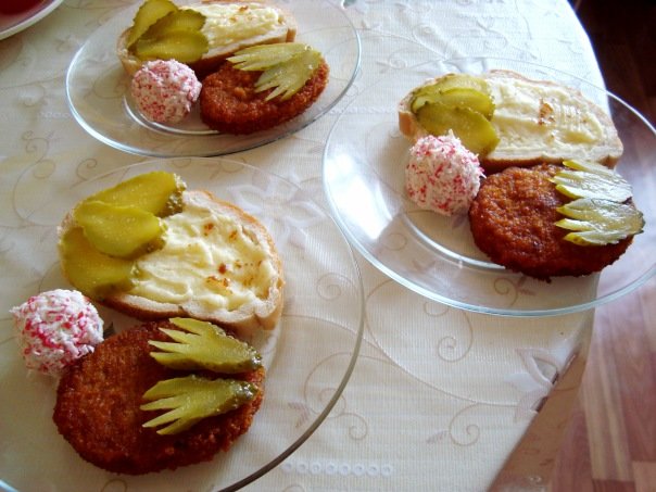 Рафаэлло : капченый сыр потерт в мелкую тёрку, чеснок, майонез, фундук, обвалять в крабовых палочках.