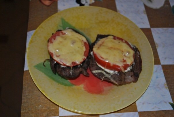 Мясо, запеченное с томатом и сыром